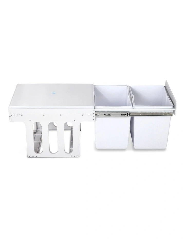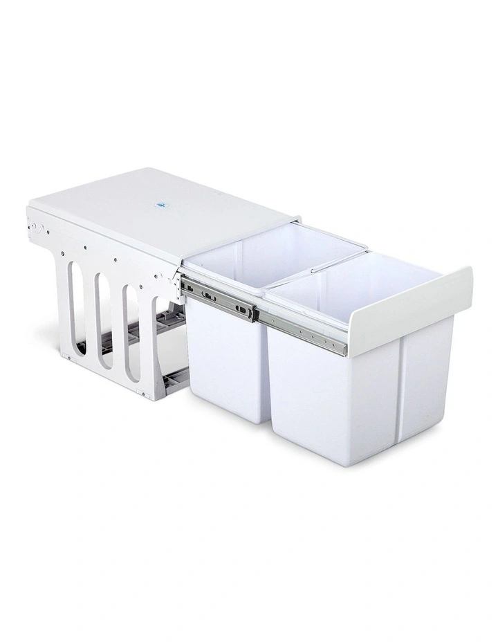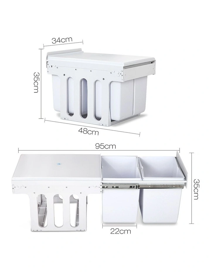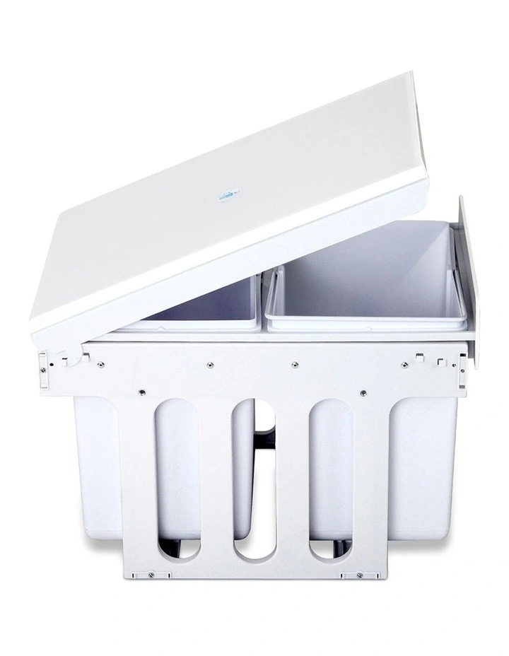 The removable plastic lids help to prevent odours from leaking out and the sturdy metal runners ensure smooth sliding in and out. The plastic waste bins also come with individual metal handles for easy lifting out for garbage disposal and subsequent cleaning. Its easy to install and does not take up valuable floor space in your kitchen.