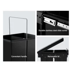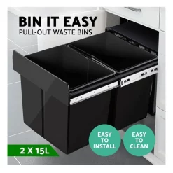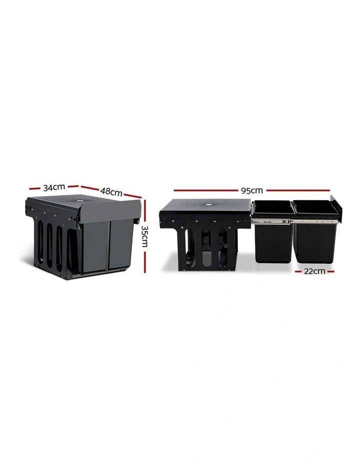 The removable plastic lids help to prevent odours from leaking out and the sturdy metal runners ensure smooth sliding in and out. The plastic waste bins also come with individual metal handles for easy lifting out for garbage disposal and subsequent cleaning. Its easy to install and does not take up valuable floor space in your kitchen.