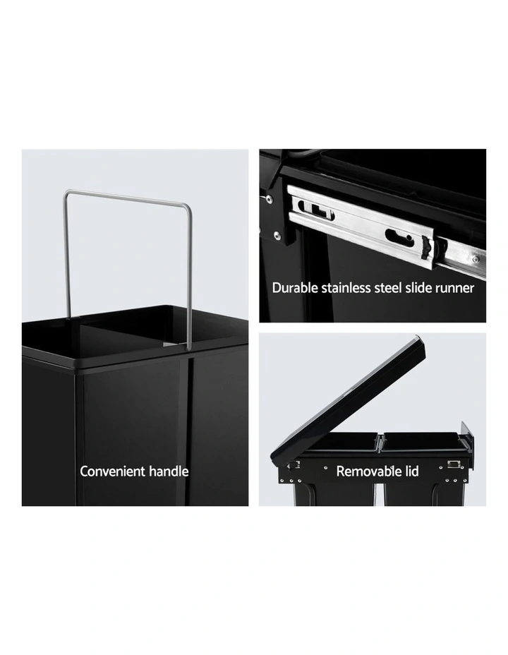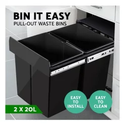 Clear your kitchen waste conveniently with our Pull-Out Bins that conceal inside your kitchen cabinet perfectly. With a 20-litre capacity for each plastic waste bin, the bins come in compartments with lids that allows you to separate your waste from each other as well as from your recycling items. The removable plastic lids help to prevent odours from leaking out and the sturdy metal runners ensure smooth sliding in and out. The plastic waste bins also come with individual metal handles for easy lifting out for garbage disposal and subsequent cleaning. It is easy to install and does not take up valuable floor space in your kitchen.
