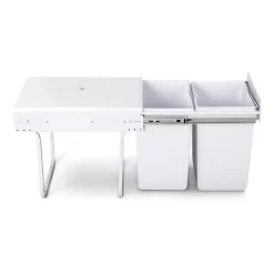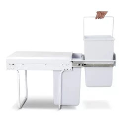 Practical and aesthetically, this Pull-out waste sorting bin is the prefect item for your home. Easily conceal it in the cupboards to save space and to create an aesthetically pleasing kitchen. It is designed with two compartments with cover lid to keep your trash organised as well as to keep unpleasant odour enclosed. Neat and simple, a great compliment to your home decor while keeping your kitchen tidy.