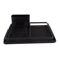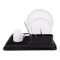 The dish rack comes with scratch resistant feet, a removable tough plastic cutlery holder, and a convenient plastic draining board with a drainage channel to keep your sink or countertop dry.
