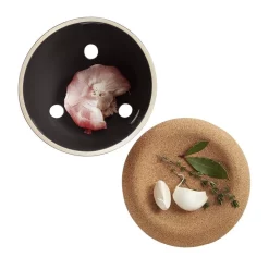 Made from natural materials, the Emile Henry Garlic Pot helps keep garlic and ginger fresh and out of sight.