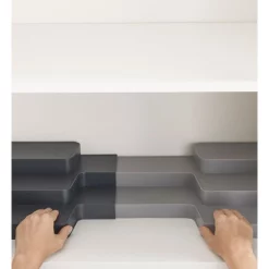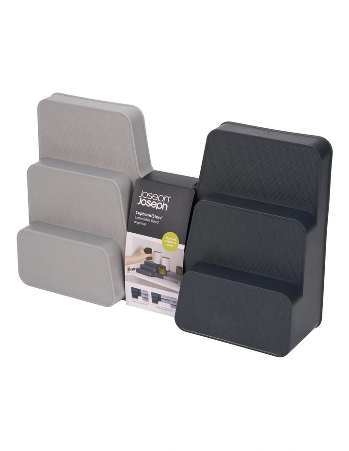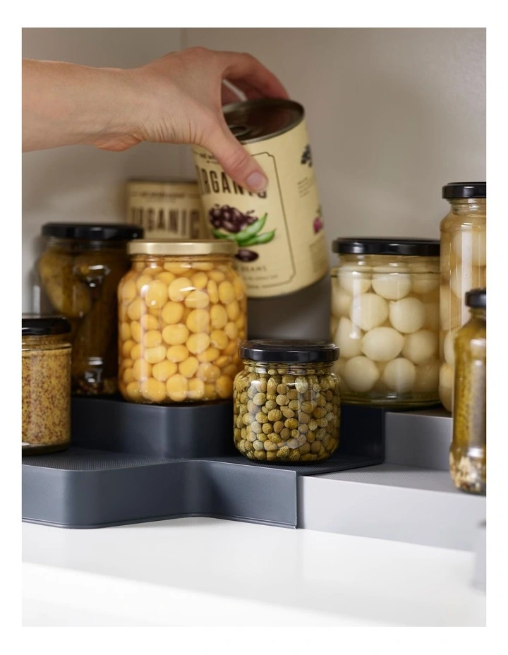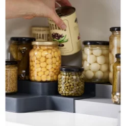 “Kitchen cupboards and larders can quickly become messy places, with a variety of different shaped food containers all competing for space. This practical storage solution helps organise cupboard chaos as it features a clever tiered design that allows visibility to items at the back and access from a variety of angles.