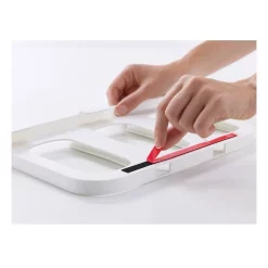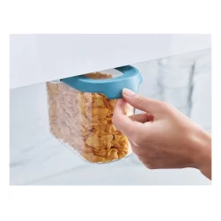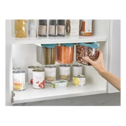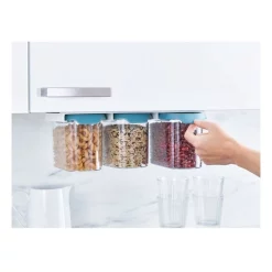 This innovative food storage set makes use of unused space beneath the shelf, thereby maximising every inch of cupboard area. The set includes three 1.3-litre clear plastic containers that hang neatly from a sturdy rail, which attaches to your existing shelf using strong 3M VHB tape. The containers all have airtight lids with easy-pull tabs and easy-pour corners. Suitable for storing a wide range of dry foods. Suitable for kitchen units with a minimum internal size of: W36 x D20 cm.