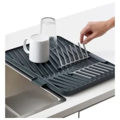 Both sides of Flip draining board have sloping ribs that prevent water being trapped in the mouths of upturned cups and bowls.
