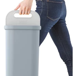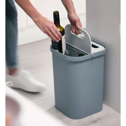 Its easy to pre-sort, store and transport recycling with this smart, compact caddy. Its divided into two 7-litre compartments allowing you to separate different types of recycling – such as glass and paper – with lids that close to hide the contents of each side. These lids, when opened together, create a handle making it very easy to transfer recycling to a larger bin kerbside or elsewhere. The two compartments can then be emptied independently by simply folding both lids to each side in turn, which traps the waste in one side as you empty the other. Capacity: 14-litreย