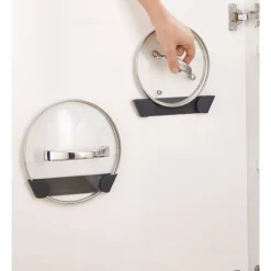 Pan lids can often be awkward items to store but not any more with this simple solution. Supplied as a set of four, each individual holder can be mounted onto the inside of a cupboard door or deep drawer and neatly holds one pan lid. Easy to install using strong 3M VHB tape, the holders are suitable for standard lids 16-24 cm in diameter.