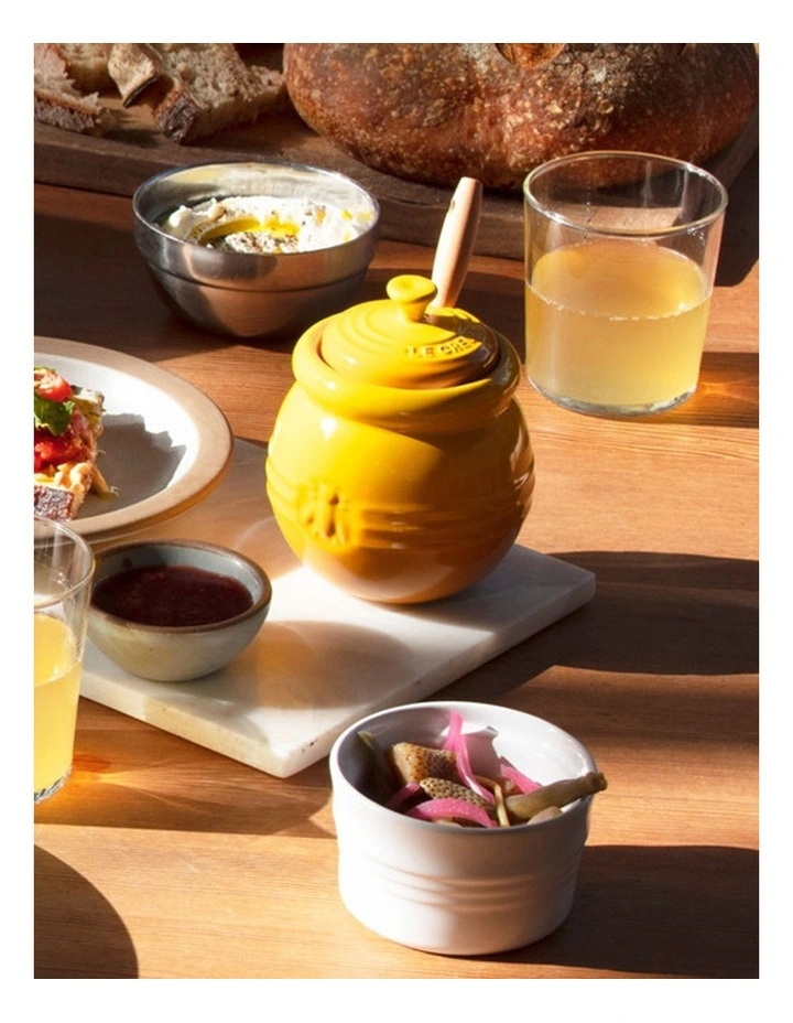 Perfect for honey as well as all sorts of other preserves, it lets you serve spreads in style. The silicone dipper allows for drip-free use while the base features the distinctive three-ring design, this piece will look at home within your existing Le Creuset collection.