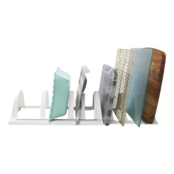 The organiser is perfect for storing bakeware such as trays, cooling racks, cutting boards and even casserole dishes, with the dividers able to be adjusted to create ideal spaces.