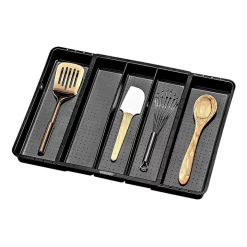 The expandable utensil tray comprises 5 compartments for easy organisation and can expand to fit in any kitchen drawer. Items stay in place thanks to a soft-grip lining and non-slip rubber feet.
