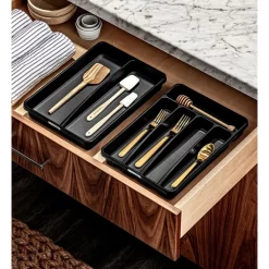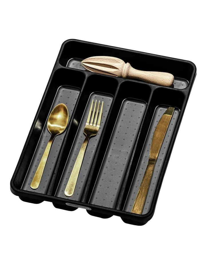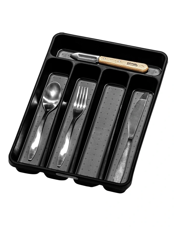 The tray, designed with clever cushioning to keep cutlery neat and in place, is made from high-quality, BPA-free plastic, with antimicrobial properties, known for eliminating 99.9% bacteria.