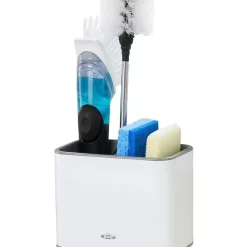 Features: Separate compartments for brushes and sponges; Drain holes allow water from brushes and sponges to drain into drip tray; Removable drip tray with built-in spout separates for thorough cleaning.