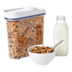 Features: Airtight, space-efficient design keeps dry foods fresh and your cupboards organised; Convenient fill line makes it easy to store staples like cereal, flour, sugar, pasta, rice, coffee, nuts and snacks; BPA free. Top-rack dishwasher safe.
