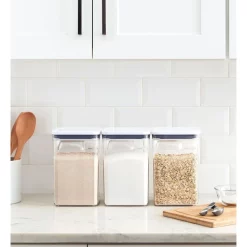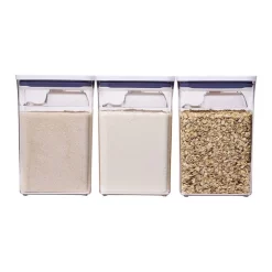 Stocking up on economy-size essentials? The OXO Good Grips 6-Piece POP Container Bulk Set is made just for you. Three 4.2L Containers are perfect for storing bulk staples like flour, sugar and snacks, and the three included cup scoops make measuring and serving a cinch. Airtight, stackable, space-efficient, and now completely dishwasher safe, these food storage Containers can be customised to fit any space. With a handy fill line to guide you, curved corners for smooth dispensing and sturdy, BPA-free construction POP containers take tidying to the next level.