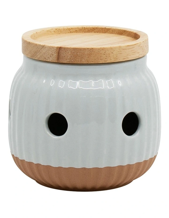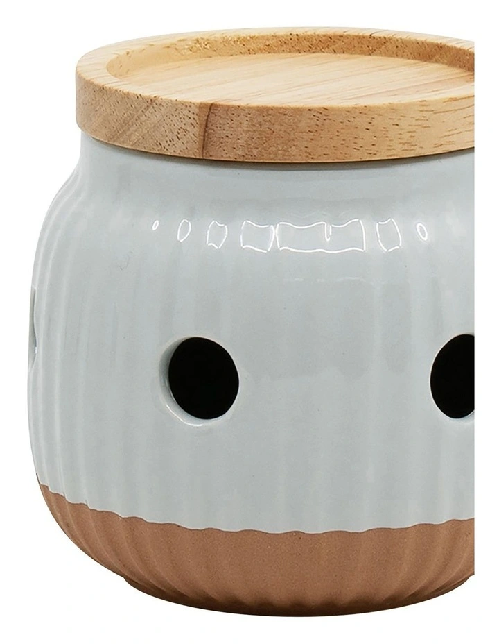 Created from stoneware with a soft organic form and hand carved rib texture is salt&pepper’s Amana Garlic Keeper. With a distinctive cloud coloured glaze, matte faux terracotta base and wooden lid, this 10×9.5cm garlic keeper will keep your garlic fresher longer. Spread earthy colours and textures throughout with coordinating pieces from the Amana collection to set the tone throughout your home.
