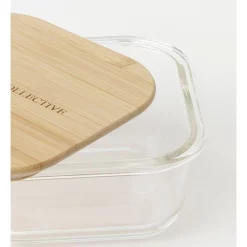 The Cooks Collective Square Bamboo and Glass Storage Canister with Lid 320mL