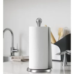 Unlike traditional mounted paper towel dispensers that are fixed in place, Tug Stand Up Paper Towel Holder gives you the option of moving it to where it’s needed most. Its base is padded and weighted to help prevent it from sliding or scratching your expensive surfaces. Tugs secret is the unique shape of its curved rubber spine which has been engineered to provide just the right amount of resistance; giving you an easy one-handed tear every time.